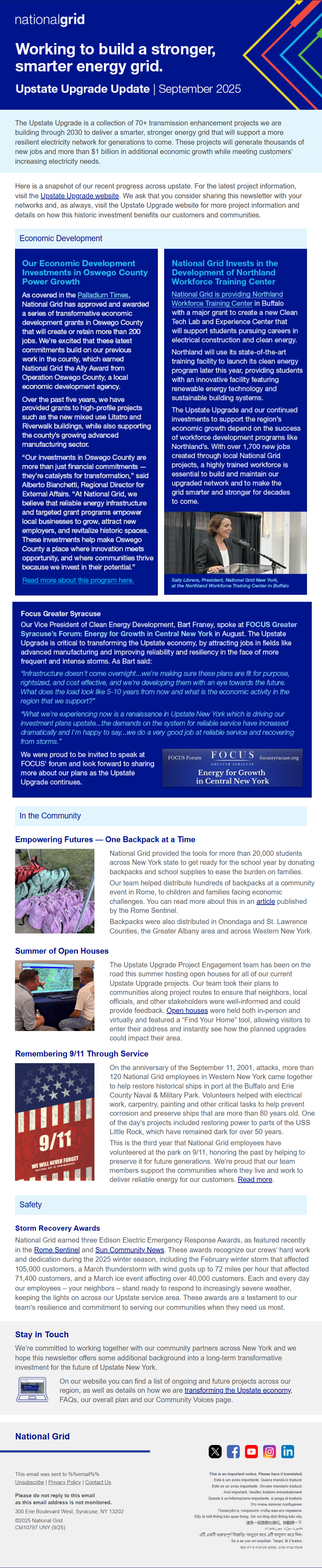 Upstate Upgrade Update: September 25, 2025